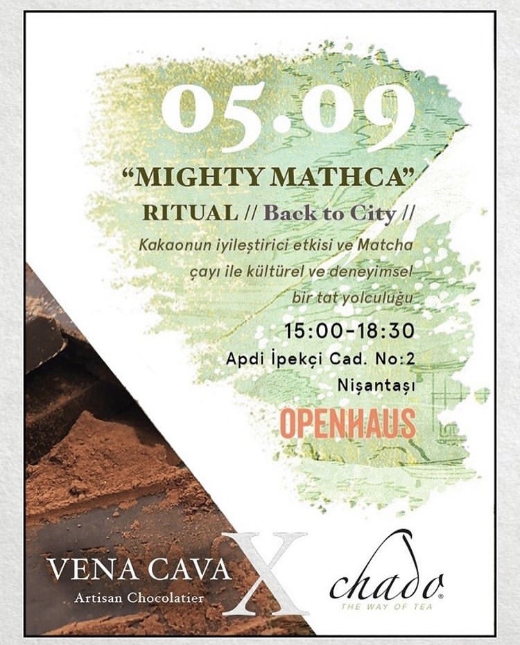 Türkiye’nin ilk ve tek “ADAPTOJENİK” çikolatası Vena Cava ve Uzakdoğu çay seremonisi uzmanı @chadotea ‘nin ev sahipliğinde, Sonbahar’da şehir hayatına dönüşün sıkı temposuna hazırlandığımız unutulmaz bir duyusal şölene davetlisiniz.